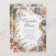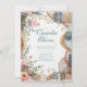 Maximalist wedding themed item with text template fields and graphics featuring an eclectic mix of decoupage, fabrics, ribbons in pastel shades of blue, pink, teal. Scrapbook decoupage style item with a shabby, country, vintage floral vibe.