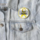 At the centre, a yellow, blue, and maroon awareness ribbon takes focus, representing the fight against bladder cancer and the need for increased research and treatment options. A bold yellow border frames the button, making the design pop.