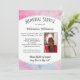 Serene Memorial Service invitation with customisable inscription MAY FLIGHTS OF ANGELS SING THEE TO THY REST. The design includes customisable photo and service details. The background is a pastel pink and pastel blue smoky effect with dark grey typography.