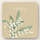 May Lily of the Valley Floral Bouquet Custom Name Coaster