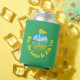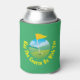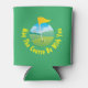 This fun design shows a golf course, with a hole and flag in the foreground. The curved text, at the bottom, of the design reads 'May The Course Be With You.' You can customise this can cooler by changing the background colour.