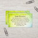 Inspirational quote business card depicts a green and blue abstract background. It features an old Irish Blessing; "MAY THE ROAD rise up to meet you. MAY THE WIND be always at your back. MAY THE SUN shine warm upon your face; the rains fall soft upon your fields and until we meet again, MAY GOD HOLD YOU in the palm of His hand."_