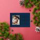 Modern Christmas card featuring your vertical photo framed by a gold foil border. The phrase "May your days be merry and bright" is displayed in elegant gold foil lettering with a festive navy background. Personalize the front of the foil Christmas card with your family name and year. The card reverses to an additional photo with a simple navy and white diagonal stripe pattern.