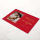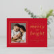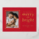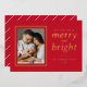 Modern Christmas card featuring your vertical photo framed by a gold foil border. The phrase "May your days be merry and bright" is displayed in elegant gold foil lettering with a festive red background. Personalize the front of the foil Christmas card with your family name and year. The card reverses to an additional photo with a simple red and white diagonal stripe pattern.