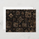 Mayan glyphs and ornaments pattern -gold on black postcard