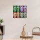 Mayan warriors - This design represents the symbolic faces of Mayan warriors in an attempt to recreate the enigmatic figures from the past. The design is hand painted with mixed-media acrylics. I have used various layers in order to customise on a variety of products. There is also a template created for you in order to change colours or add text on the poster.