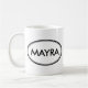 Check out this Mayra mug! Is your name Mayra? Or do you have a wife, girlfriend, female family member or female friend named Mayra? If so, this "Name Stamp" mug is exactly the gift that you're looking for! The design features "Mayra" in big black lettering surrounded by two ovals, one thin and one thick.