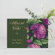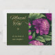 This is a customisable card for the birth of a baby girl. Edit the text to add your own personalised message. The card features beautiful large purple flowers on a dark green background. The words Mazal Tov (Hebrew for Congratulations) is featured in gold tone lettering with a Star of David. The back of the card features elegant lettering, and a calligraphy leafy flourishing vine, on a dusty pink damask background.