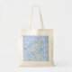 A pretty tote bag with a blue and white abstract, maze-like pattern, designed by Judy Adamson.