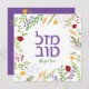 Mazel Tov Hebrew Jewish Script Whimsical Floral Card
