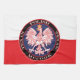 This colourful round design features the Polish Eagle with a gold crown, the coat of arms of Poland on a Texas Flag coloured blue background, surrounded by the words Polish Texan and McCook.