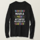I love this shirt. I had written to the artist asking her if this picture was available on a shirt, and she wrote me back telling me where I could find the shirt. These shirts can be custom made to have a different saying. I loved this saying and went with it. The artist wrote me back later to tell me that she had seen my order go through. How's that for service? Pretty special. It's just as displayed. Perfect!