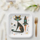 MCM Black Cat Retro Spaceship Stars Planets Paper Plate