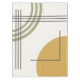 An abstract design inspired by the abstract. minimalism of 1950s art. Circles and lines in gold and olive green.