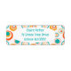 These return address labels have a mid-century modern design of concentric circles in gold, orange, and turquoise on a white background.