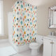 Add a touch of glamping comfort to your home, travel trailer or cottage nest with this mid-century pattern style shower curtain. Created in a retro abstract flower and leaves pattern in shades of orange and teal blues with with striking black accents. See more in this design collection at Camp and Cottage on Zazzle.