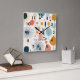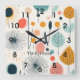 Add a touch of cosy kitsch to your home, travel trailer or cottage nest with this mid-century pattern style wall clock. Created in a retro abstract flower, leaves and pods pattern in shades of orange and teal blues with with striking black accents. Your choice of round or square style. See more in this design collection at Camp and Cottage on Zazzle.
