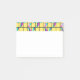 This Post-It notepad has a mid-century modern design of crescent moons divided horizontally into three colours, pink, blue, lavender, or seafoam, split in half and scattered on a grid with a yellow background. If you like the design but want different colours, message me.