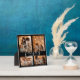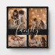 A modern, unique family photo collage plaque to personalise with 4 favourite pictures. Happy family memories photo home decor piece personalised with stylish script font "family".