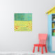 A modern contemporary landscape painting featuring a peaceful flower filled summer meadow with birds flying against the sky and a forest of pine trees in the distance. Fresh and uplifting yellow and green colours. Original art by Nic Squirrell.