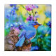 This vibrant artwork depicts a charming bluebird perched on a rustic tree stump, surrounded by a lush, colourful field of wildflowers. The dreamy, painterly effect enhances the natural beauty, with soft hues of blue, pink, and yellow creating a serene, springtime ambiance. This composition captures the essence of nature's tranquillity and is ideal for wildlife, bird, gardens, and peaceful outdoor settings lovers.