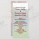 Add you autumn wedding information to this beautiful card. All text is adjustable to move, resize, and change the font and colour. Convert this for any occasion. In the middle of the meadow sits a white antique-looking table with chairs. On top of the table is a flower pot with red flowers. In the background are the trees that are starting to change with the early fall. The back has the autumn tree with the changing leaves.