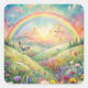 Meadow with Flowers and Butterflies and a Rainbow Square Sticker
