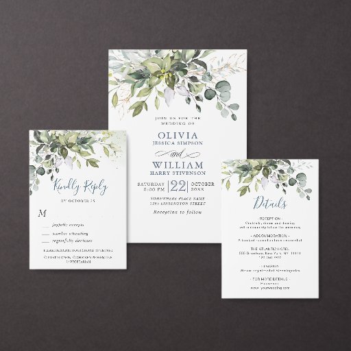 MEAL CHOICE Simple Elegant Eucalyptus Wedding RSVP Card