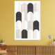 The muted palette—stone beige, fog gray, pale taupe, and soft black—evokes architectural calm and material quietude. Clean edges and flat color fields emphasize precision and intentionality, aligning the piece with contemporary modern interior aesthetics. The result is a contemplative work that feels both grounded and refined, offering visual order without sterility.