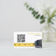 This business card front features a close-up photograph of a yellow measuring tape along the bottom. Personalise the template, remove any text or click customise to select a font style, size, and colour. REPLACE the QR code with yours.This business card design may work well for wood restoration, carpenter, construction jobs or maybe your business.