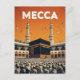 This powerful and evocative postcard features a stylised illustration of Mecca, the spiritual heart of Islam. It beautifully depicts the sacred Kaaba at the centre of the Grand Mosque (Masjid al-Haram), surrounded by countless pilgrims performing the tawaf. The striking orange sky and minarets add to the majestic atmosphere.