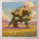 Artwork of a mech in a field of flowers. A unique painting that beautifully blends the industrial with the idyllic. A battle-worn mech stands quietly amidst a vibrant field of wildflowers, under a serene sky dotted with fluffy clouds. The painterly strokes and harmonious colour palette of blooming purples, yellows, and greens create a sense of peace around the imposing machine. This artwork sparks contemplation on humanity's relationship with technology and nature, and the beauty that can be found in unexpected places. It's a piece for sci-fi enthusiasts and anyone seeking art that offers both striking visuals and imaginative depth. It's an ideal choice for adding character and a touch of imaginative wonder to any modern home decor. This art can be customised, printed, and or downloaded.