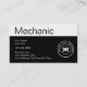 Mechanic business cards template with a novel design that includes the word mechanic in a simple but bold layout on the front, with all your business information and contact information and unique expert mechanic emblem. Designed for an auto mechanic, machinist, or professional automotive engineer.