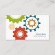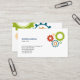 Customisable business cards template with colourful logo of cogs forming an abstract gear mechanism.