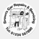 Fun sticker for a garage or automotive repair shop. The central image shows a mechanic working on a car. This is a black-and-white cartoon. Add your own business details. Mechanical Car Repairs & Servicing Stickers and Labels.