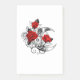 Contour, mechanical crescent moon with gears, decorated with red roses with black spiked stems and leaves on white background. Steampunk