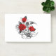 Contour, mechanical crescent moon with gears, decorated with red roses with black spiked stems and leaves on white background. Steampunk