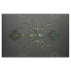 Mechanical elegance, the spider in the dark. Set against a deep, dark grey background, unfolds a mesmerising image of a spider that appears both graceful and sinister. Its body has a skeletal, almost mechanical appearance, enhanced by the use of shimmering green and gold tones. The spider's legs are long and slender, elegant in shape yet menacing in appearance.