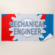 Mechanical Engineer text on a grey gear against a blue and red background is a unique gift design for mechanical engineers and engineering students at back to school, birthdays, holidays or graduation.