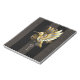 Steampunk, antique, golden, mechanical hummingbird with brass gears and silver key on striped, brown background. Gold bird.