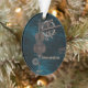 A curious steampunk violin, with mysterious mechanical parts and functions, is pictured in a dark aqua and midnight blue sky on this oval ornament (which could be worn as a pendant or even used as a deluxe gift tag). The name shown can be edited or removed, as desired.