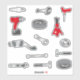 Fun sticker set of mechanic's tools and equipment.