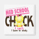 Med School Chick t-shirts and gifts featuring an adorable big-headed chick with chocolate and pink bow and coordinating text with funny slogan “I can’t. I have to study.” Perfect gift idea for that med school chick on your list!