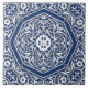 Ceramic tile in a medallion pattern adapted from antique Persian tile work - white tracery on cobalt blue