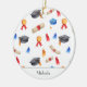 Personalised graduation ornaments are a fun addition to the Christmas tree and make a fantastic gift for graduates and their families. With a simple pattern of graduation caps in black and blue colours, some medals, tassels and diplomas, this ornament is perfect to celebrate and remember the occasion for years. Illustrated and designed by Patricia Alvarez.