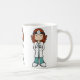 Cute illustration of a sweet Girl doctor with red hair wearing scrubs and a white overcoat. This illustration is part of a series called Girls Characters, Girls on the job. The series shows girls in different professions, dressed accordingly.