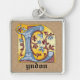 Mediaeval Blue and Red Ivy Illuminated Letter L Key Ring
