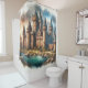 Mediaeval Castle by a Tranquil River at Sunset Shower Curtain