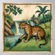A leopard with simple line work and a hint of yellow and brown, emphasizing elegance in a mediaeval artistic context.