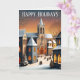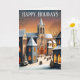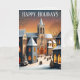 Mediaeval Christmas Village Scene Happy Holidays greeting card. Residents of a small historic village walking through the streets as sunset colours spread into the Christmas Eve sky. The illustration is a reminder of peaceful Christmases in years gone by. The verse inside reads "May You Be Blessed With Hope & Love This Christmas Season".